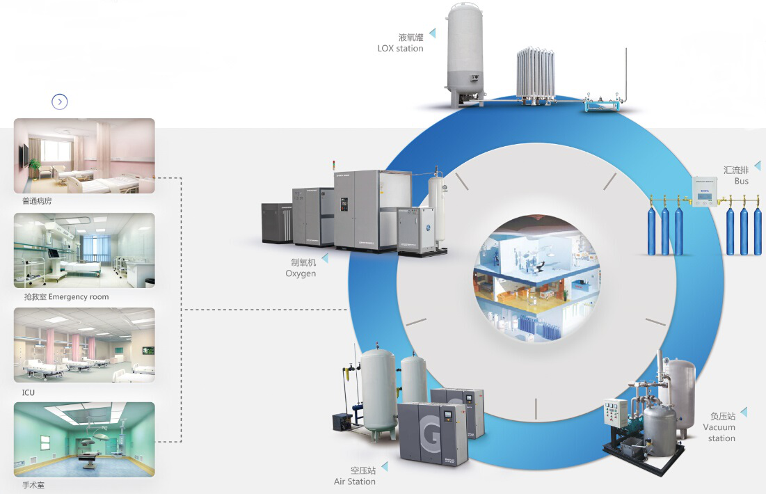 醫(yī)用氣體工程便是醫(yī)院建設(shè)中不可缺少的一部分!醫(yī)用氣體作用于醫(yī)院運(yùn)行的方方面面,直接用在治療上、手術(shù)麻醉、醫(yī)療設(shè)備和工具的動(dòng)力源、醫(yī)學(xué)試驗(yàn)和細(xì)菌、胚胎培養(yǎng)等。