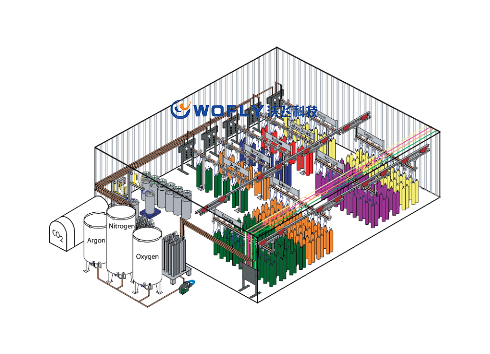 什么是氣體充裝系統(tǒng)?工業(yè)氣體按組份可分為單一品種氣體的工業(yè)純氣和二元或多元?dú)怏w的工業(yè)混合氣。國家標(biāo)準(zhǔn)《瓶裝壓縮氣體分類》(GB16163-1996)中,根據(jù)工業(yè)純氣在氣瓶內(nèi)的物理狀態(tài)和臨界溫度進(jìn)行分類,并按其化學(xué)性能,燃燒性、毒性、腐蝕性進(jìn)行分組。第1類為永久氣體,其臨界溫度〈-10℃,在充裝時(shí)以及在允許的工作溫度下儲(chǔ)運(yùn)和使用過程中均為氣態(tài),分為a、b兩組:a組為不燃無毒和不燃有毒氣體(包括氧、 氮、氬等),b組為可燃無毒和可燃有毒氣體(包括氫等)。第2 類為液化氣體,其臨界溫度≥-10℃, 包括高壓液化氣體和低壓液化氣體。其中,高壓液化氣體臨界溫度≥-10℃、且≤70℃,在充裝時(shí)為液態(tài),但在允許的工作溫度下儲(chǔ)運(yùn)和使用過程中隨著溫度升高至臨界溫度時(shí)即蒸發(fā)為氣態(tài),分為a、b、c 三組:a組為不燃無毒和不燃有毒氣體(包括二氧化碳);b組為可燃無毒和自燃有毒氣體;c 組為易分解或聚合的可燃?xì)怏w。低壓液化氣體臨界溫度〉70℃,在充裝時(shí)以及在允許的工作溫度下儲(chǔ)運(yùn)和使用過程中均為液態(tài),也分為a、b、c三組:a組為不燃無毒和不燃有毒及酸性腐蝕氣體(包括氯);b 組為可燃無毒和可燃有毒及堿性腐蝕氣體(包括氨);c 組為易分解或聚合的可燃?xì)怏w。第3類為溶解乙炔, 在壓力下溶解于氣瓶內(nèi)溶劑的氣體,僅有a組:易分解或聚合的可燃?xì)怏w(包括乙炔)。此分類是混合氣配制的基礎(chǔ)。