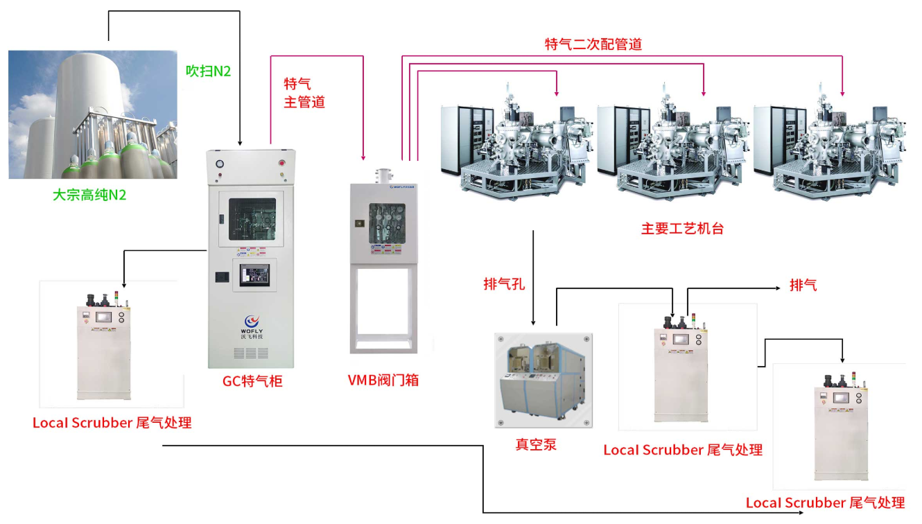 電子特氣管道系統(tǒng)的主要作用講解。電子特氣管道系統(tǒng)是半導(dǎo)體、顯示面板、光伏等高端制造業(yè)中不可或缺的核心基礎(chǔ)設(shè)施,其主要作用是為精密制造過(guò)程提供高純度、高穩(wěn)定性、高安全性的特種氣體輸送解決方案。以下從功能定位、技術(shù)特性、應(yīng)用場(chǎng)景三個(gè)維度展開(kāi)詳細(xì)講解: