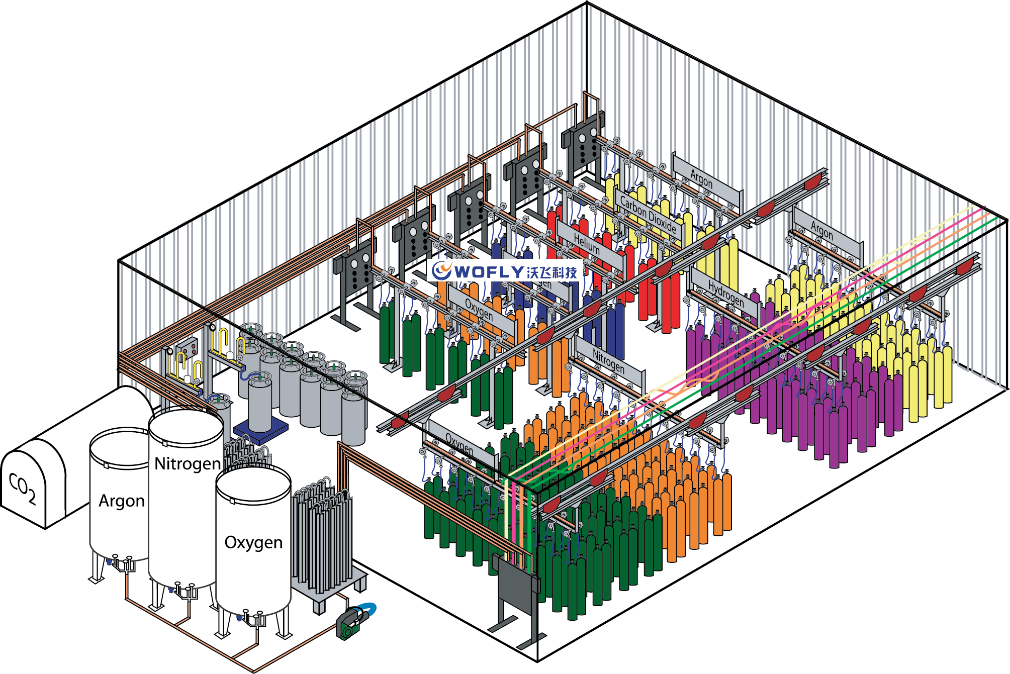 氣體充裝系統(tǒng)詳細(xì)講解。工業(yè)氣體按組份可分為單一品種氣體的工業(yè)純氣和二元或多元氣體的工業(yè)混合氣。國家標(biāo)準(zhǔn)《瓶裝壓縮氣體分類》(GB16163-1996)中,根據(jù)工業(yè)純氣在氣瓶內(nèi)的物理狀態(tài)和臨界溫度進行分類,并按其化學(xué)性能,燃燒性、毒性、腐蝕性進行分組。第1類為永久氣體,其臨界溫度〈-10℃,在充裝時以及在允許的工作溫度下儲運和使用過程中均為氣態(tài),分為a、b兩組:a組為不燃無毒和不燃有毒氣體(包括氧、 氮、氬等),b組為可燃無毒和可燃有毒氣體(包括氫等)。第2 類為液化氣體,其臨界溫度≥-10℃, 包括高壓液化氣體和低壓液化氣體。其中,高壓液化氣體臨界溫度≥-10℃、且≤70℃,在充裝時為液態(tài),但在允許的工作溫度下儲運和使用過程中隨著溫度升高至臨界溫度時即蒸發(fā)為氣態(tài),分為a、b、c 三組:a組為不燃無毒和不燃有毒氣體(包括二氧化碳);b組為可燃無毒和自燃有毒氣體;c 組為易分解或聚合的可燃?xì)怏w。低壓液化氣體臨界溫度〉70℃,在充裝時以及在允許的工作溫度下儲運和使用過程中均為液態(tài),也分為a、b、c三組:a組為不燃無毒和不燃有毒及酸性腐蝕氣體(包括氯);b 組為可燃無毒和可燃有毒及堿性腐蝕氣體(包括氨);  c 組為易分解或聚合的可燃?xì)怏w。第3類為溶解乙炔, 在壓力下溶解于氣瓶內(nèi)溶劑的氣體,僅有a組:易分解或聚合的可燃?xì)怏w(包括乙炔)。此分類是混合氣配制的基礎(chǔ)。