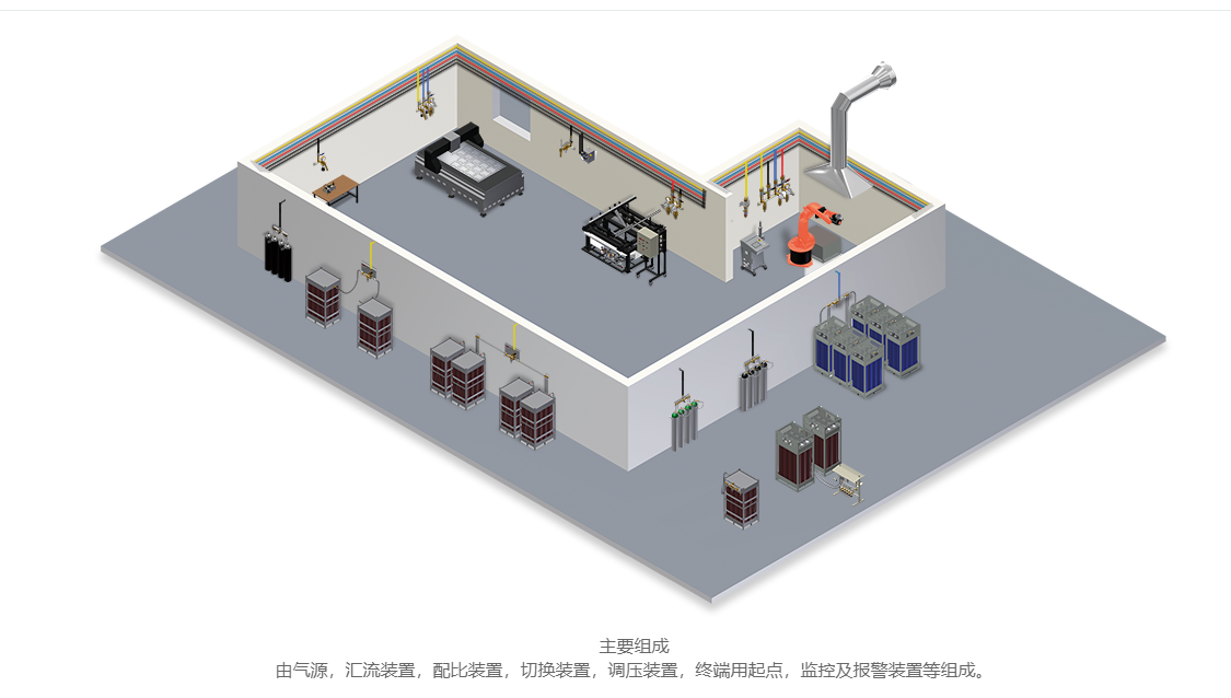 氣源集中管理:將鋼瓶等氣源放置在工作區(qū)外的安全區(qū)域,減少高壓設(shè)備及潛在危險(xiǎn),避免有毒或可燃?xì)怏w泄漏風(fēng)險(xiǎn)。