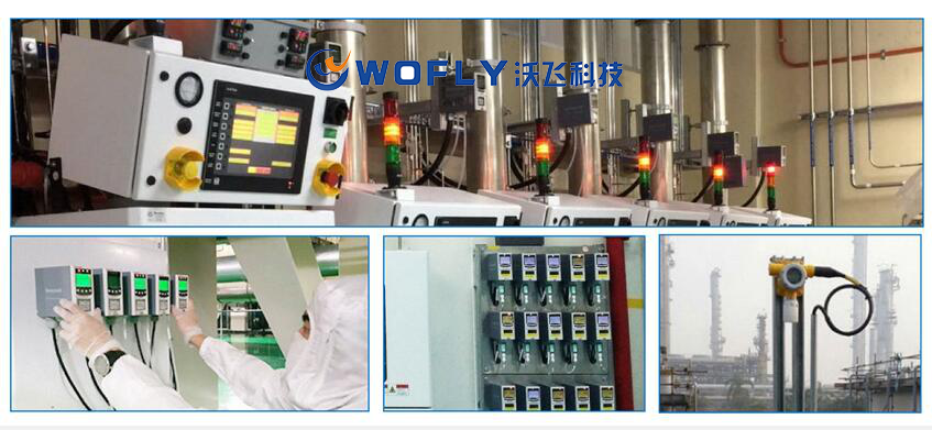 以可燃?xì)怏w檢測器為例,當(dāng)氣體探測器檢測到空氣中的可燃?xì)怏w時,將氣體濃度的大小轉(zhuǎn)化為相應(yīng)的4-20mA電流信號,由連接電纜傳送至深圳沃飛科技有限公司的監(jiān)測報警控制系統(tǒng),監(jiān)測報警控制器再將電信號轉(zhuǎn)化為數(shù)字信號,在液晶顯示器上顯示出氣體的濃度值,當(dāng)檢測值大于報警設(shè)定值時,便由蜂鳴器或警示燈發(fā)出報警信號,提示工作人員引起注意,或啟動連鎖排風(fēng)系統(tǒng)。