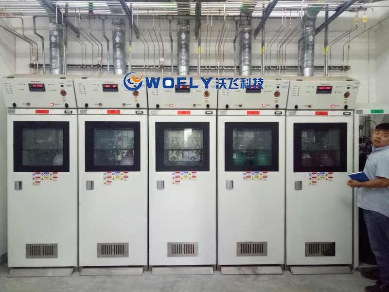 沃飛WOFLY全自動(dòng)特氣柜(GC)通過PLC面板,配合觸摸屏進(jìn)行系統(tǒng)顯示和設(shè)定,從而實(shí)現(xiàn)設(shè)備安全有效的運(yùn)行。其內(nèi)部PLC程式設(shè)計(jì)的安全聯(lián)鎖功能、高純閥件的合理選擇和布局,既滿足了CVD(化學(xué)氣相沉積)在生產(chǎn)過程中對(duì)氣體原材料的高純度和連續(xù)穩(wěn)定供給的要求,也確保了正常生產(chǎn)和員工人身安全。