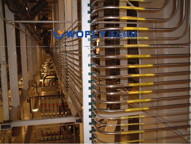 (2)生產(chǎn)廠房?jī)?nèi)特種氣體管道的干管,應(yīng)敷設(shè)在技術(shù)夾層或技術(shù)夾道內(nèi),當(dāng)與水電管線共架時(shí),當(dāng)相對(duì)密度小于或等于 0.75 的氣體管道宜設(shè)在水、電管線下部;相對(duì)密度大于 0.75 的特氣管道宜設(shè)在水、電管線上部。