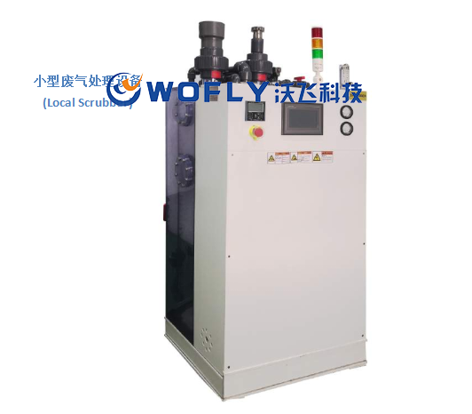 由于工作區(qū)域多半離中央廢氣處理系統(tǒng)遠(yuǎn),常因氣體特性導(dǎo)致管路中結(jié)晶或粉塵堆積造成管路堵塞后導(dǎo)致氣體泄漏,嚴(yán)重者甚至引起爆炸,無(wú)法確?,F(xiàn)場(chǎng)工作人員之工作安全。因此在工作區(qū)域,尾氣處理裝置應(yīng)靠近GR、GC等特種氣體設(shè)備布置?;蚺渲眠m合工藝氣體特性的小型廢氣處理設(shè)備(Local Scrubber),以減少在工作區(qū)域滯留的廢氣確保人員安全。