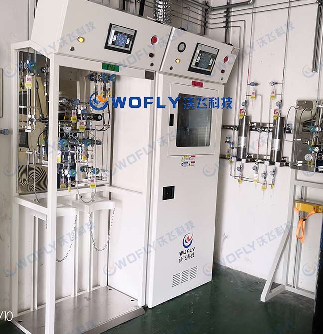 沃飛WOFLY全自動特氣柜(GC)通過采用PLC控制,觸控屏為人機界面,通過設(shè)備安裝的壓力傳感器、氣動閥、過流量計等裝置,實現(xiàn)設(shè)備安全有效的運行。其內(nèi)部PLC程式設(shè)計的安全聯(lián)鎖功能和高純閥件的合理選擇和布局,既滿足了半導(dǎo)體工藝生產(chǎn)過程中對特殊氣體連續(xù)供給和高純度的要求,同時也確保了工廠正常生產(chǎn)和員工人身安全。