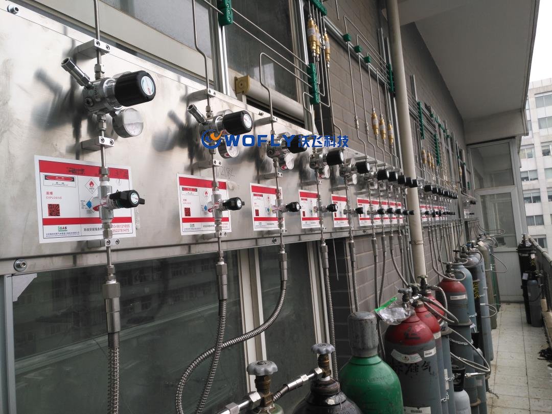 1、氣源部分:氣瓶(氣源)集中安置在特定的氣瓶間,通過一級減壓系統(tǒng)(氣體減壓器或匯流排)裝高壓氣體轉(zhuǎn)化成低壓氣體。