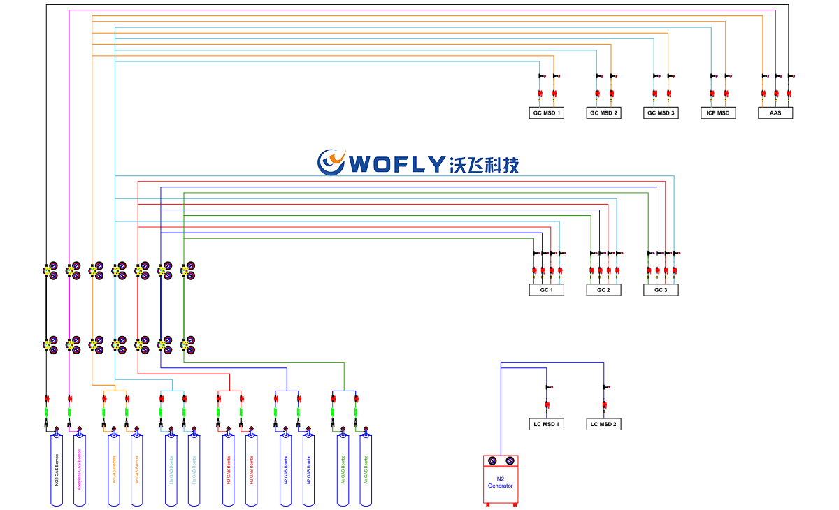1、 分散供氣是將氣瓶或氣體發(fā)生器分別放在各個(gè)儀器分析室